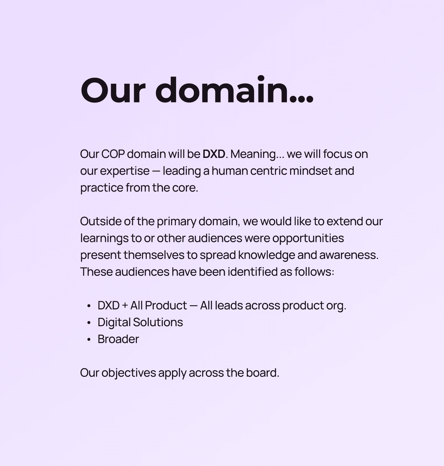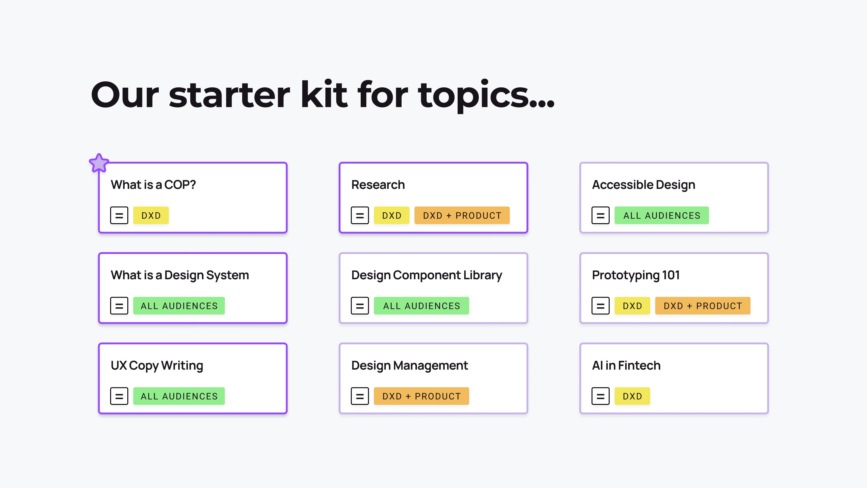 The COP was created as a structured forum where designers, product partners, and cross-functional leaders could learn from one another, align on best practices, and grow together. Grounded in three pillars: